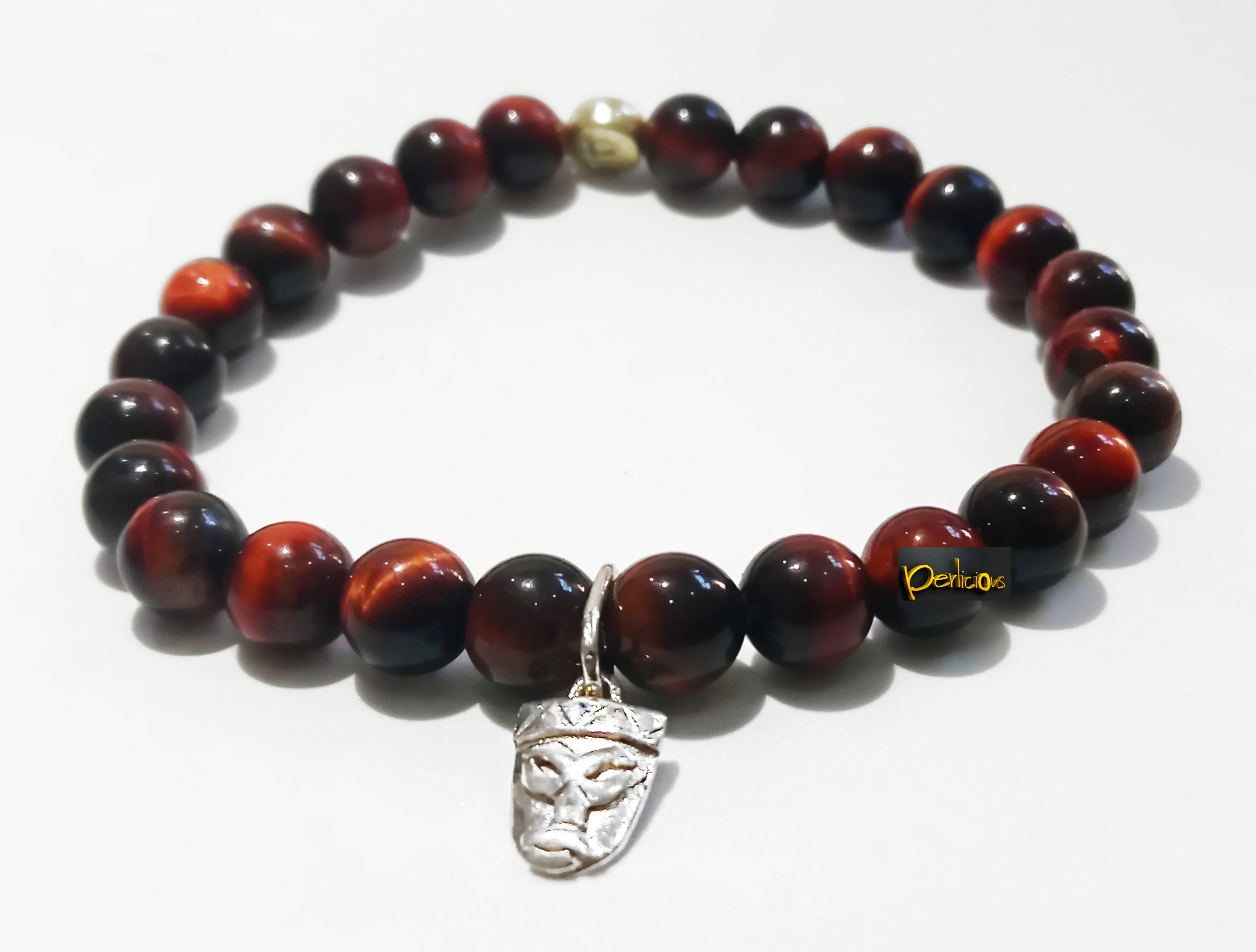 A nice mix of bull’s eye stones and an African mask made in pure silver by our craftsmen. As the stones are natural and authentic, their colors, shapes and reflections may vary from the photo above.