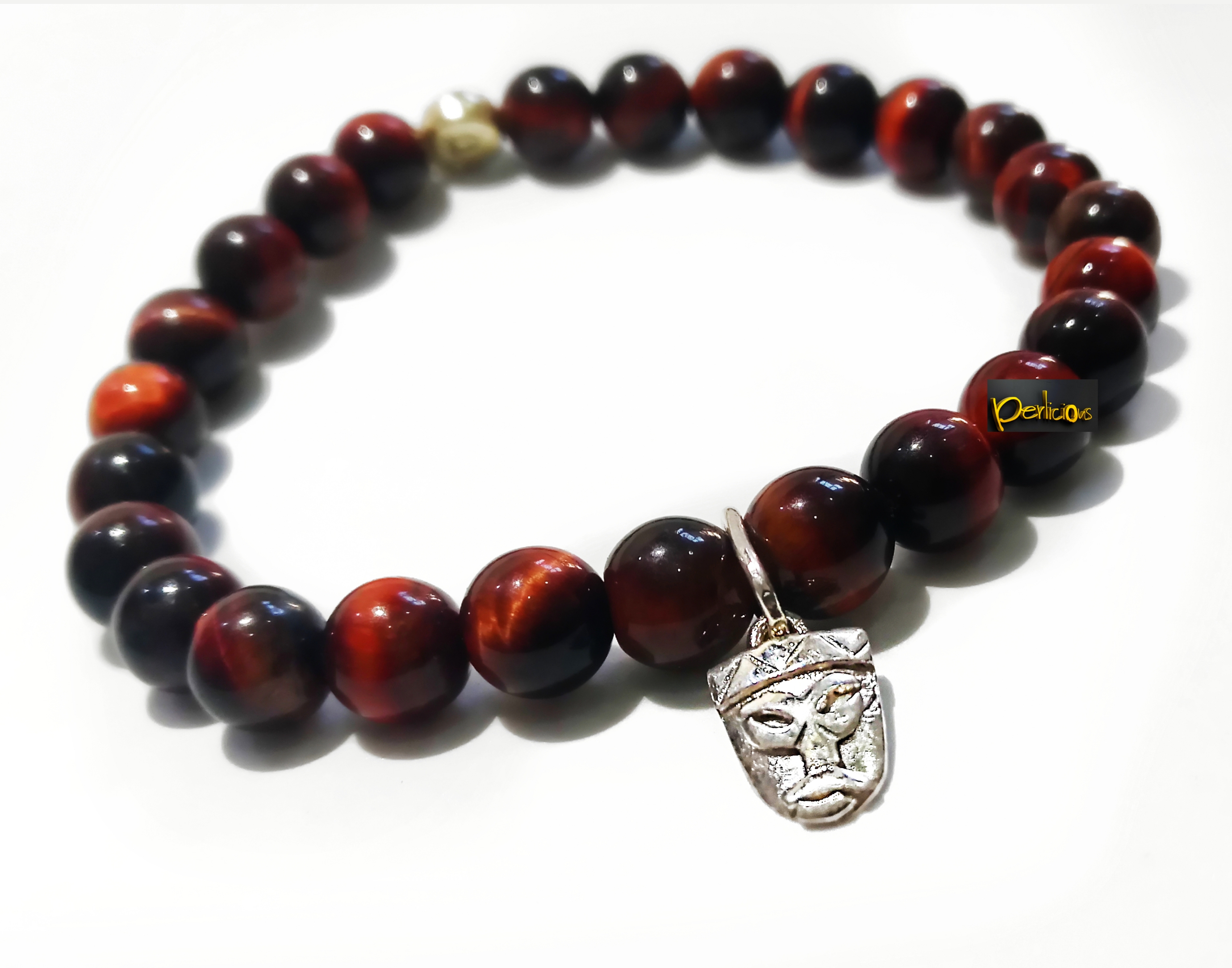 Un savant mélange de pierres oeil de taureau et d’un masque Africain réalisé en argent pur par nos artisans. Les pierres étant naturelles et authentiques, leurs couleurs, formes et reflets peuvent varier par rapport à la photo ci-dessus.