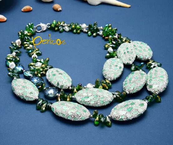 🇬🇧 This magnificent necklace is as beautiful as it is precious. Handmade, with Austrian crystal and Aventurines from Brazil, a stone known for its virtues of peace and balance.
