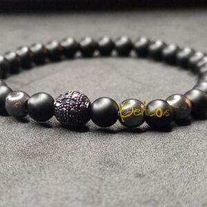 ✨ 1 Bracelet en onyx noir , Zircon et hématite . Pierres de 6mm et 19cm de tour de poignet.