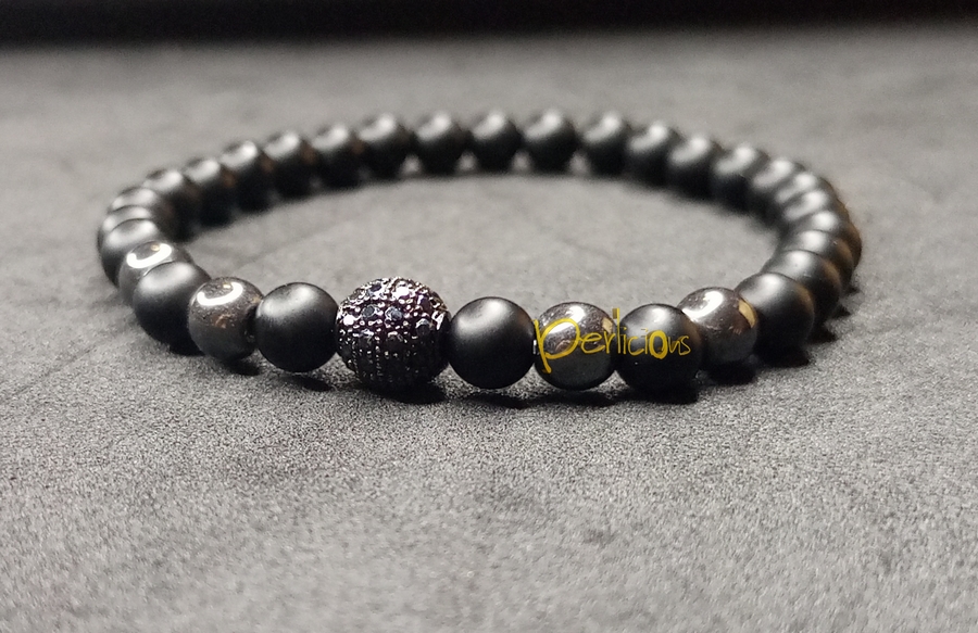 ✨1 black Onyx ,Zircon and Hematite bracelet . 6mm diameter stones and 19cm wrist circumference