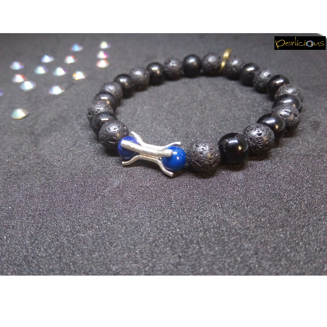 💫 1 precious bracelet in Black Onyx – Lava Beads – Blue Agate – Silver hand melted claws