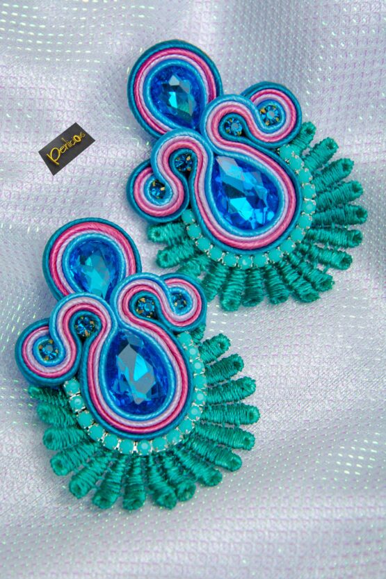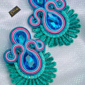 Boucles d’oreille faites de Soutache composée de soie et de Crystal deluxe . Faites main.
