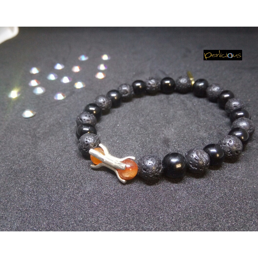 💫 1 precious bracelet in Black Onyx – Lava Beads – Fire Agate – Silver hand melted claws