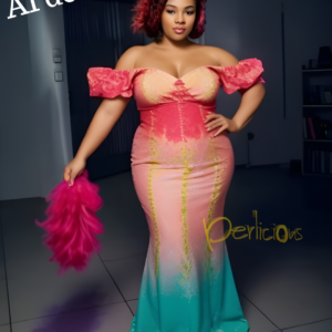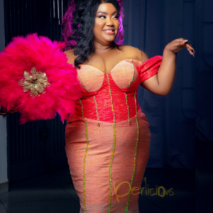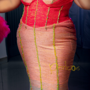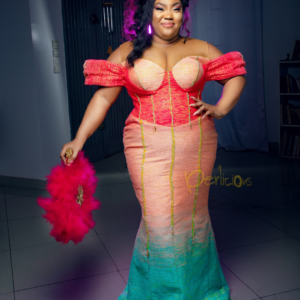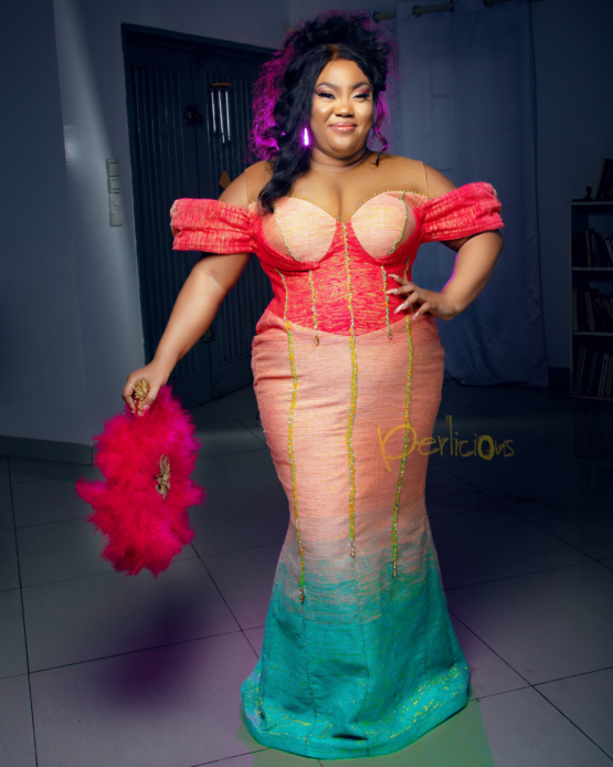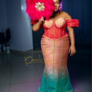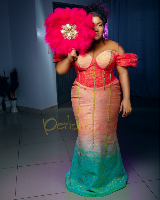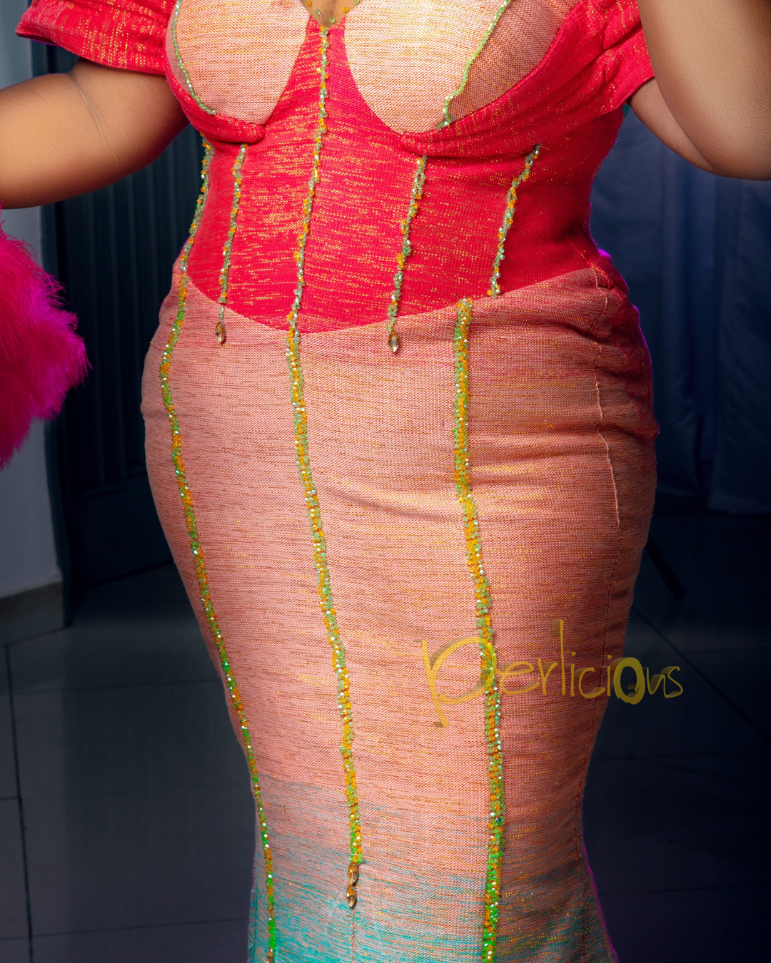 Chaque détail, chaque nuance, soigneusement transposé du virtuel au réel. Du tissage du pagne à la main, jusqu’à la tenue finale ,en passant par la couture et l’embellissement au perlage.